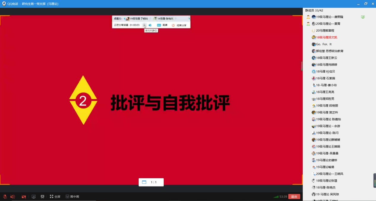 7月26日晚7点30分,yl23411集团研究生第一党支部采取线上线下相结合形式召开党史学习教育专题组织生活会。