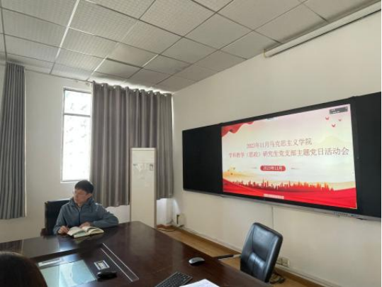 11月17日下午,我院学科教学(思政)研究生党支部在学院五楼会议室以“线上+线下”相结合的形式开展十一月主题党日活动。支部全体党员参加,活动由支部宣传委员翦美玲同志主持。
