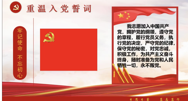 会议最后,全体党员重温入党誓词,王梦如同志提到:“希望大家在重温入党誓词的过程中,对自己的党员身份有更深的认识。”