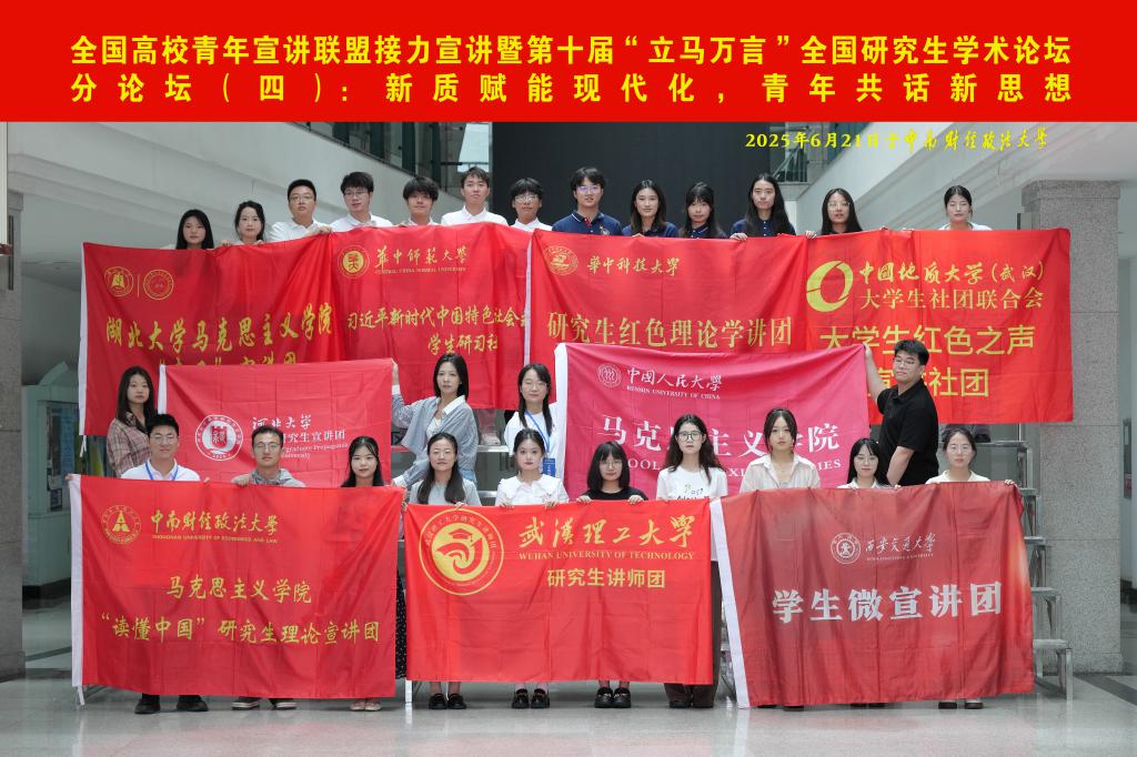 (文 / 王润东 )6月20日至21日,由全国高校青年宣讲联盟发起、中南财经政法大学主办的“读懂中国·理响南湖”——全国高校青年接力宣讲暨第十届“立马万言”全国研究生学术论坛第四分论坛在武汉举行。此次论坛汇聚了来自中国人民大学、浙江大学、西安交通大学、湖南大学、武汉大学、yL23411永利集团等全国15所高校学生理论宣讲团,我院青马宣讲团作为代表受邀参加此次会议。