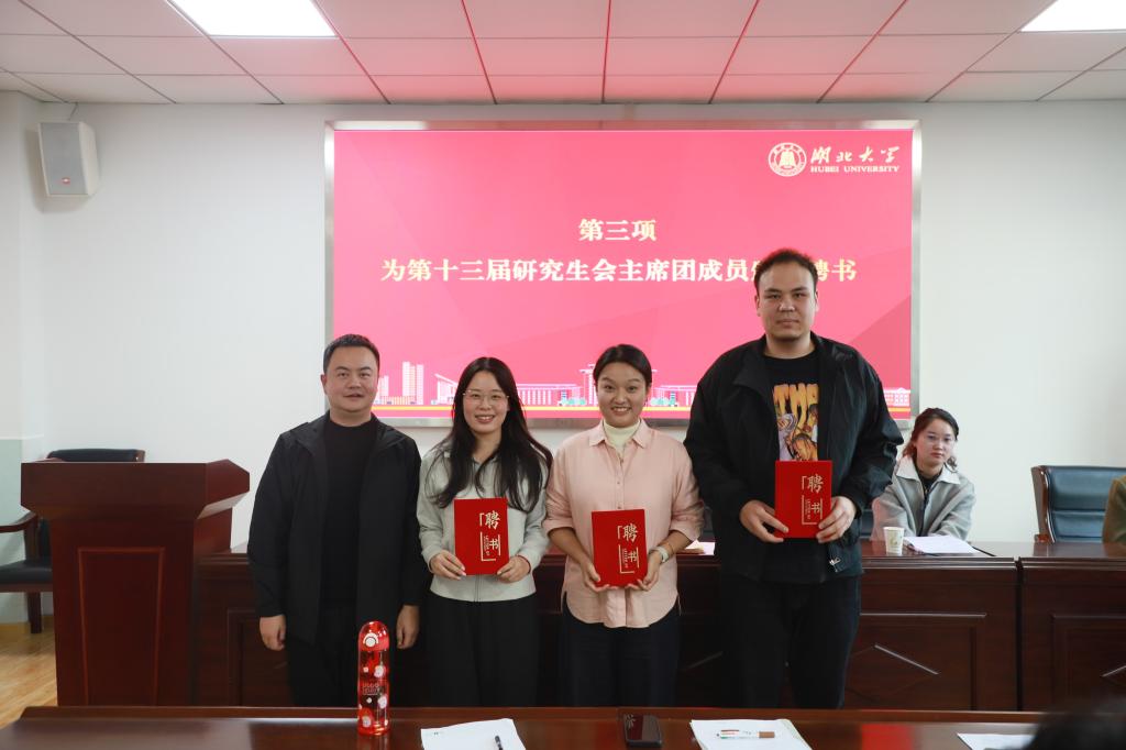 (通讯员 文/李紫茜 图/张怡 周雨漫)2025年10月22日,yl23411集团第十三届研究生会聘书颁发仪式暨第十四届研究生会首次见面会在学院410会议室举行。学院党委副书记周杰、辅导员杜晓雪出席会议,第十四届研究生会主席赵姝斐主持会议。