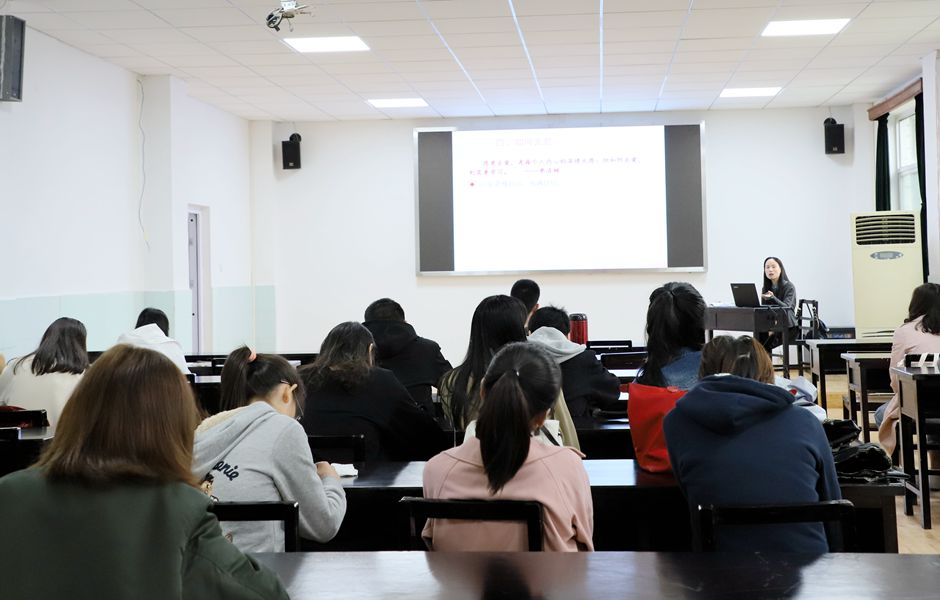 10月25日下午,我院在教2-410教室举办了研究生心理健康系列讲座之“研究生情感关系应对”,我校心理健康教育中心杨歆喃老师应邀担任此次讲座的主讲人,我院2019级全体研究生聆听了本场讲座。