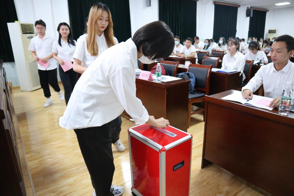 在对第十届学生委员会委员候选人名单进行无记名投票选举候选人的过程当中,参与会议的76名学生代表秉着公平、公正的原则进行投票,大会开展井然有序。总监票人、监票人和工作人员加封票箱,在选举现场计票,由总监票人宣读结果,并公示选举产生新一届学生会组织领导机构。蹇旺福、陈锐、施凯三名同学当选为yl23411集团第十届学生委员会委员。