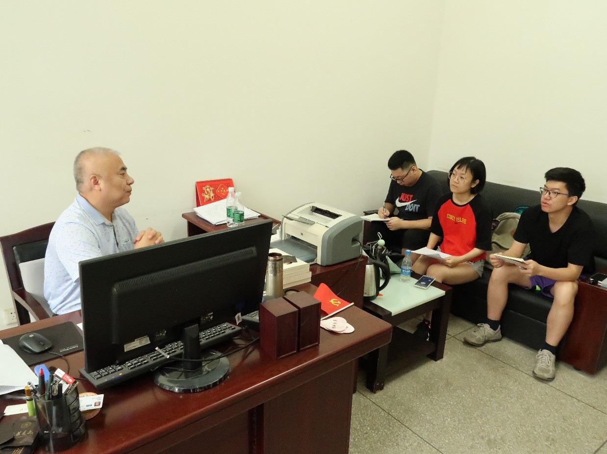 (图为团队成员与湖大社区刘书记进行访谈)