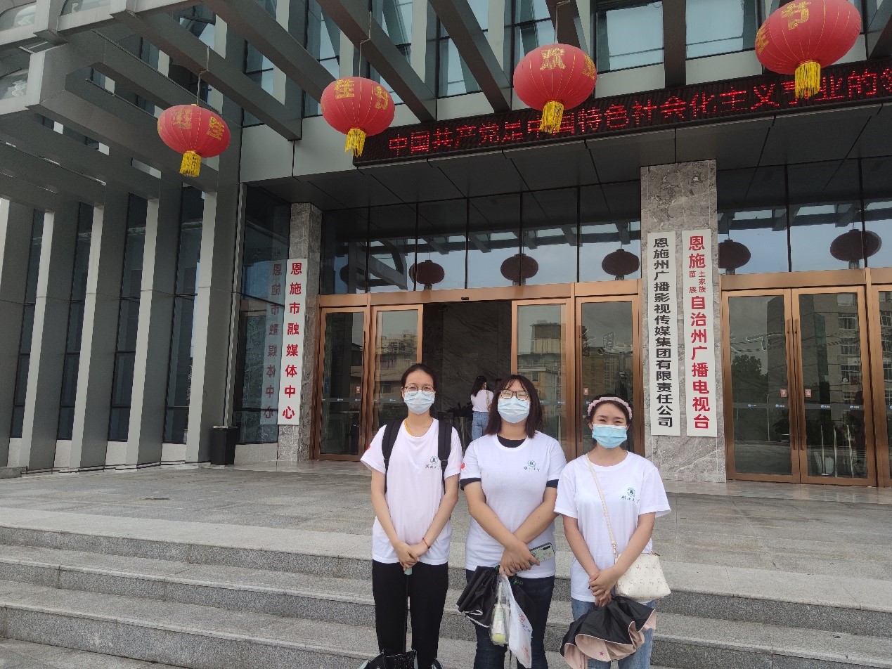 (图为团队成员在电视台前调研合影)