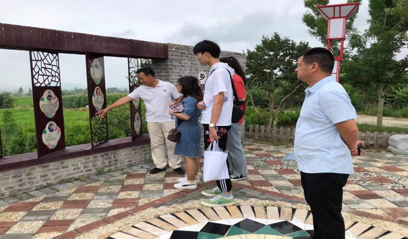 (图为丁家塝村村干部带领调研团队参观“耕读小镇”/彭薇摄)