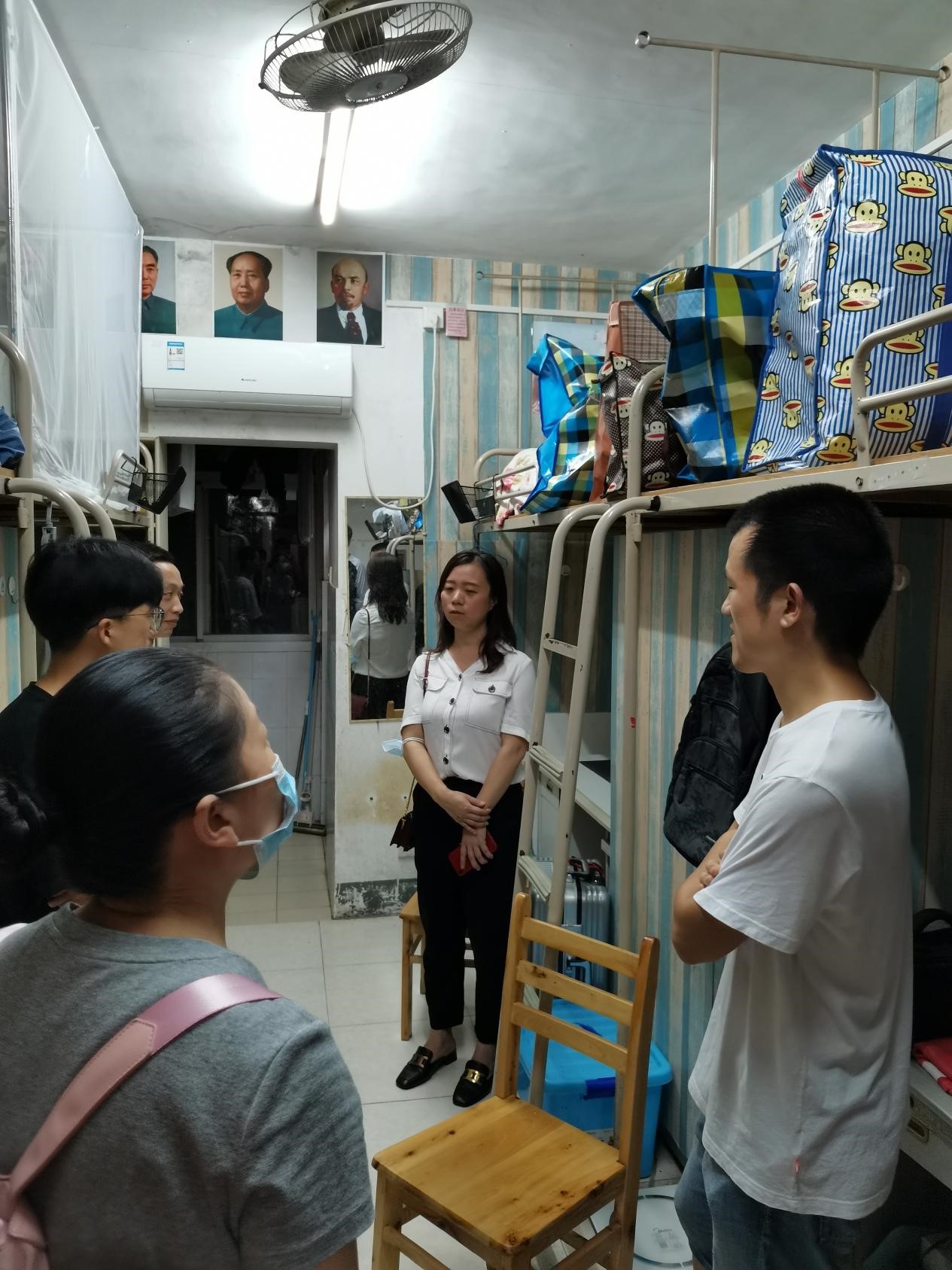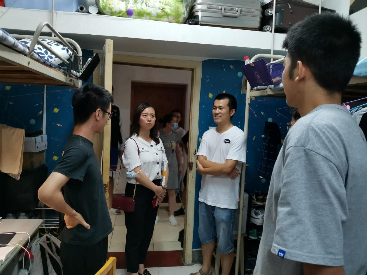 院党委副书记晏妮一行来到诚信学生公寓,看望暑期留校考研、参加社会实践的同学,详细询问他们的学习生活情况,并送上学院的关怀。她嘱咐同学们,当前国内疫情呈多点零星散发,同学们要做好防护工作,遇到发热等紧急情况第一时间和班主任联系;考研备考时间紧迫,但也要劳逸结合,注意防暑降温;利用假期,强化专业知识学习。随后,院党委副书记晏妮一行前往一期学生公寓、五栋宿舍楼看望慰问了部分留校研究生。