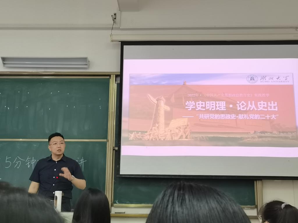 本学期以来,yl23411集团讲师王昊以其《中国共产党思想政治教育史》课程为载体, 组织2021级思想政治教育专业学生开展“学史明理,论从史出”特色实践课程。学生们以章节为单位,分为12组,选取经典案例,对党不同时期思想政治教育的经验、成果、教训进行综合研究,并在课堂上进行15分钟的展示汇报。