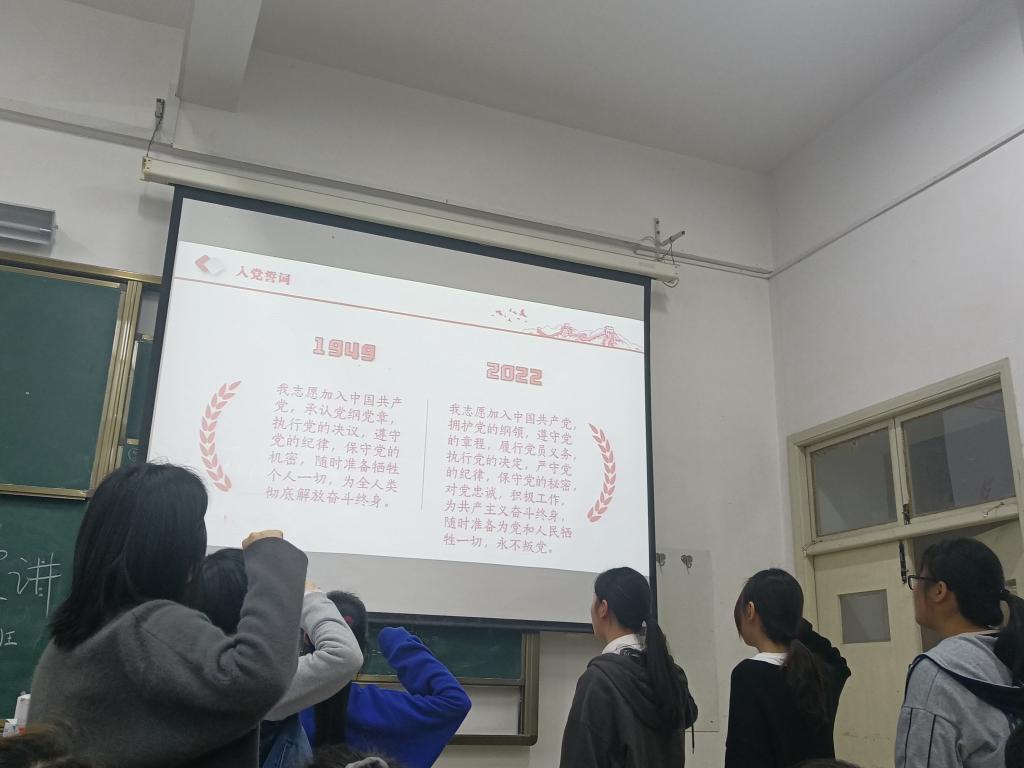 4月2日下午,yl23411集团2021级思想政治教育专业学生郑筱桐和颜巧举起右拳,在庄严的配乐中,重温建国初期和十二大之后的入党誓词。