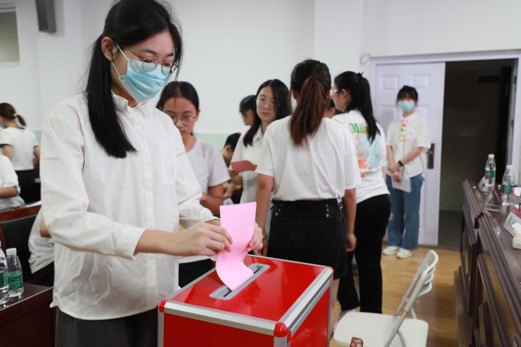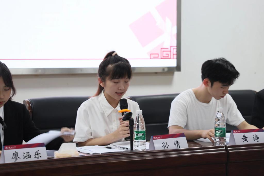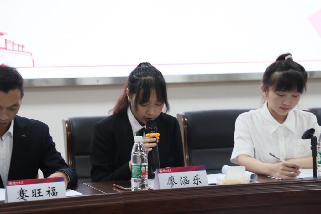 校学生会主席团成员廖涵乐发言,充分认可我院学生会工作,勉励全体代表们不负青春,不负韶华,不负时代,认真学习,深刻领会新的工作需求,并落实到今后的学习工作中,以优异的成绩迎接二十大。