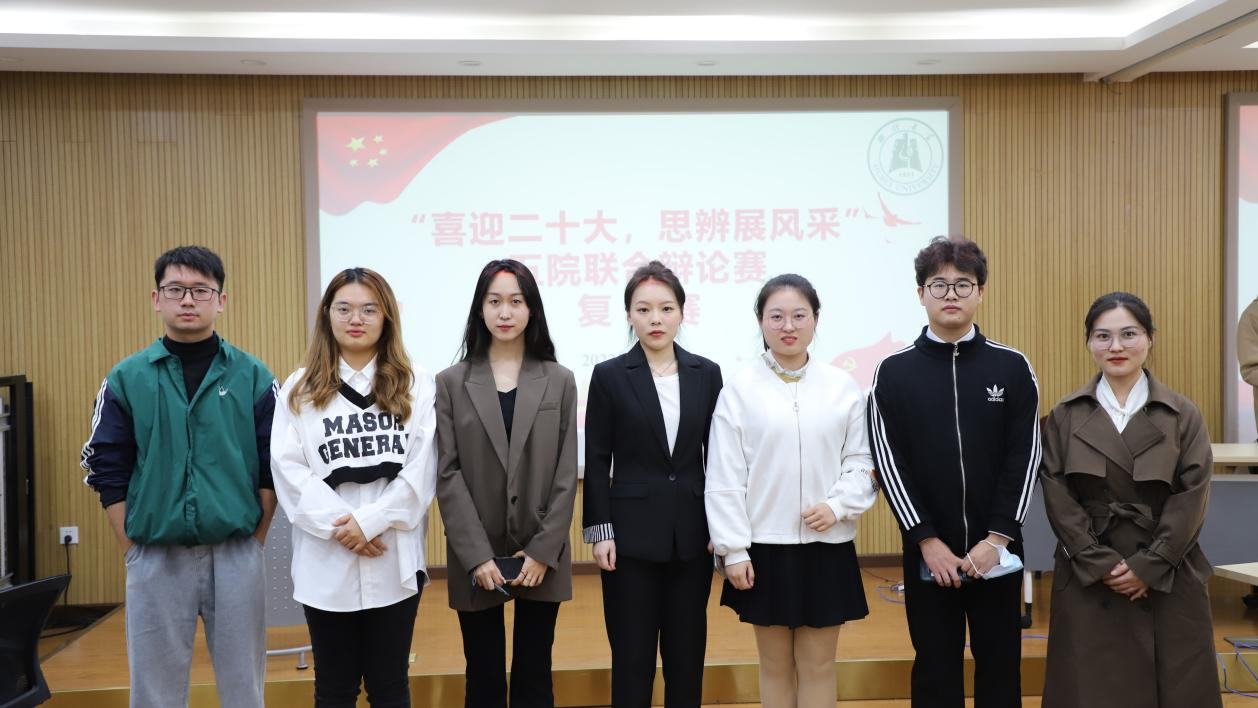 为响应第六届学术科技节的号召,加强院系之间的学术交流,展现研究生朝气蓬勃的科研活力与精神风貌,11月4日晚,yl23411集团、法学院、商学院、资源环境学院、师范学院五院联合发起的“喜迎二十大,思辨展风采”辩论赛在商学院C2014报告厅成功举办。yl23411集团胡晓炀、贾凤利、乔慧鑫、黄晨4名选手参赛,五院研究生会主席担任比赛评委。