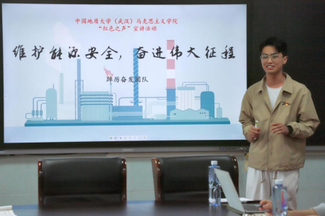 中国地质大学yl23411集团“红色之声”宣讲团成员钟绍斌以“维护能源安全,奋进伟大征程”为主题,紧密结合党的二十大精神和国际热点问题,讲解了能源安全的新内涵,指出了能源安全对于我国社会生产、民生、国防等方面的重要性,并从国家举措、高校作为、青年担当三个层次提出了应对之策。