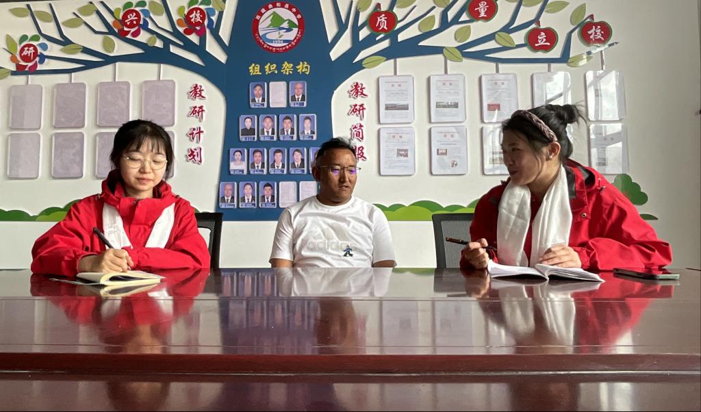 (图为组员孙艳新、雷伊蕾在采访在藏教师代表)
