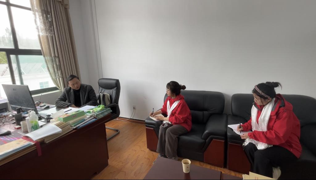 (图为组员孙艳新、雷伊蕾在采访柯文平校长)