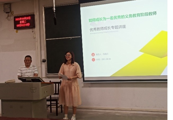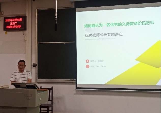 9月28日上午,武昌实验中学沙湖学校教务主任张湘文老师在教3-402教室为yl23411集团18级政教专业全体同学主讲“优秀教师成长”专题课。本次教师成长专题课由政教系副主任胡银银主持。