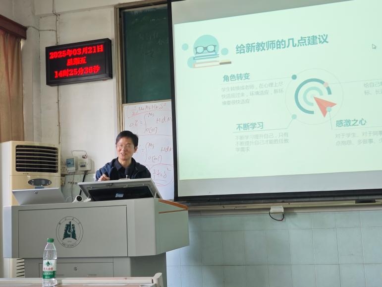 甘海涛老师从新教师面临的挑战切入。他强调,教师需快速完成从学生到教育者的思维转化,以高尚品德、扎实学识和良好师生关系为基础,通过持续学习提升专业能力,将“责任心、爱心与事业心”贯穿教育始终。在教学常规与课堂管理环节,甘老师重点剖析了“备课”与“课堂时间管理”两大核心。他提出备课需基于学科标准和学生学情,既要注重教材钻研,也要灵活设计教学方法。课堂时间的科学分配则是提升效率的关键,抓住学生注意力黄金期讲授核心内容,在注意力分散期通过互动活动调整节奏,最终利用反弹期总结巩固,形成张弛有度的课堂结构。