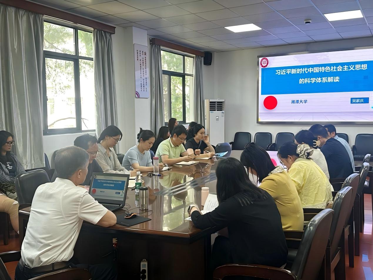 (通讯员 赵姝斐)2025年5月27日上午9点,湘潭大学yl23411集团二级教授、博士生导师吴家庆应邀为学院师生作题为“习近平新时代中国特色社会主义思想的科学体系解读”的专题讲座。