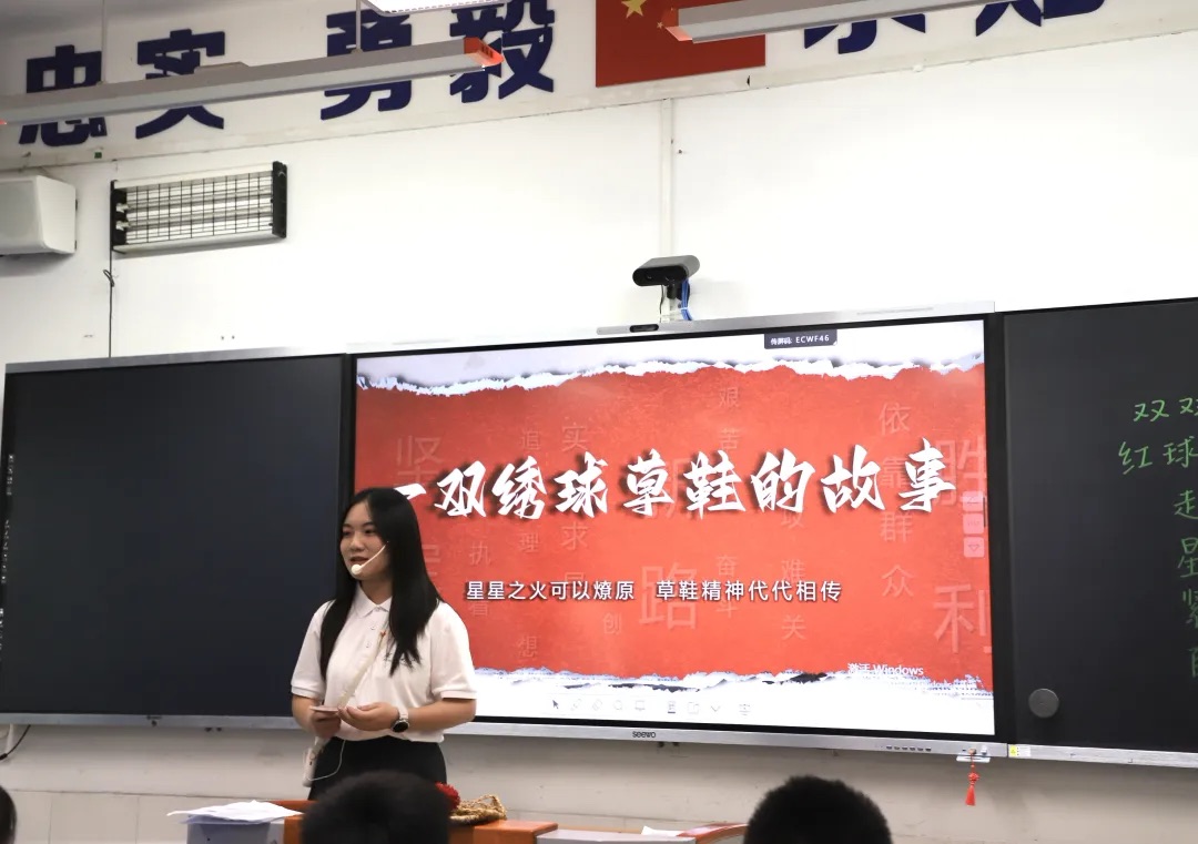 课堂上,思政教育变得生动可感:学生们亲手触摸草鞋的编织纹理,沉浸式观看情景剧再现的黄春秀灯下编草鞋、于都河畔送红军等历史场景。在“给老红军的一封信”环节中,学生动情地说道:“先辈的浴血奋战,换来了我们今天的幸福生活”,红色种子在潜移默化中悄然生根发芽。