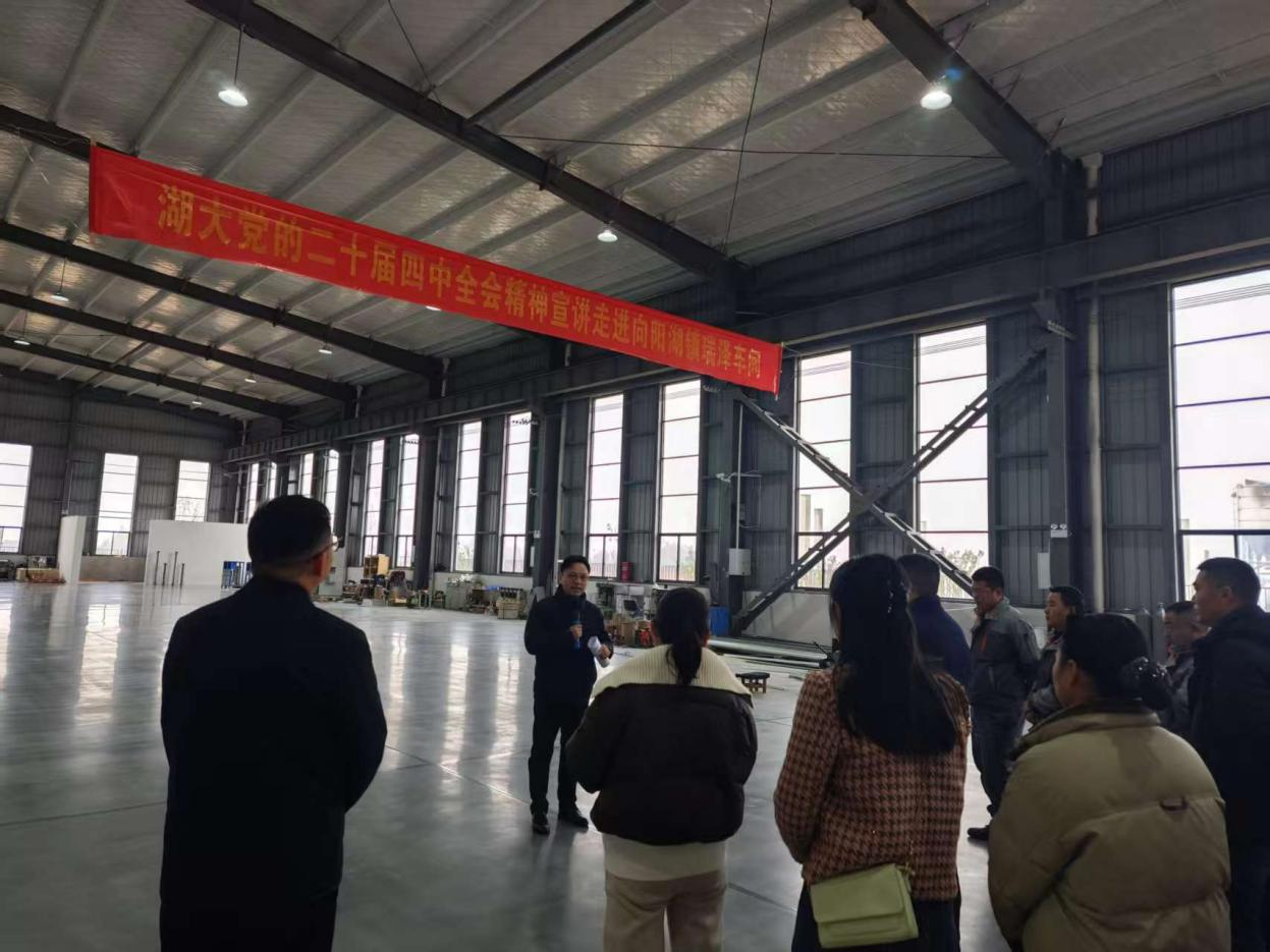 在瑞泽气体净化湖北有限公司,学院副院长易振龙教授走进生产一线,开展“车间面对面”宣讲。他聚焦科技创新赋能企业高质量发展,结合企业实际生产流程与技术需求,深入浅出地解读了全会关于科技自立自强、产业优化升级的部署,为企业发展鼓舞了信心。随后,杨海军副教授在多媒体会议室作题为“学习贯彻党的二十届四中全会精神,推进企业高质量发展”的专题宣讲。他从《“十五五”规划建议》起草背景、国内外形势分析入手,重点阐述了企业高质量发展的路径,包括领悟政策导向、坚持创新驱动、加强文化建设等方面,并与属地代表开展互动交流。活动结束后,宣讲团赴甘棠村、甘棠社区走访慰问困难群众李宏训、黄江炎、夏定武,传递组织温暖。