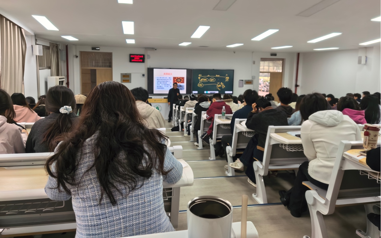 本次听课环节由yl23411集团郭劲松教授讲授《中国近现代史纲要》课程中的“辛亥革命的爆发”相关内容。课堂上,郭劲松教授以“辛亥革命缘何成功”为切入点,凭借深厚的史学功底和丰富的教学经验,运用大量历史图片、文献档案以及地方史料,生动还原了武昌起义前湖北革命党人的活动轨迹。授课逻辑清晰、史论结合、情感充沛,将宏大叙事与细节考证巧妙融合,课堂反响良好。听课的老师们全程认真记录,从教学内容设计、教学方法运用、课堂呈现效果以及价值引领等方面进行了全面细致的观摩学习。