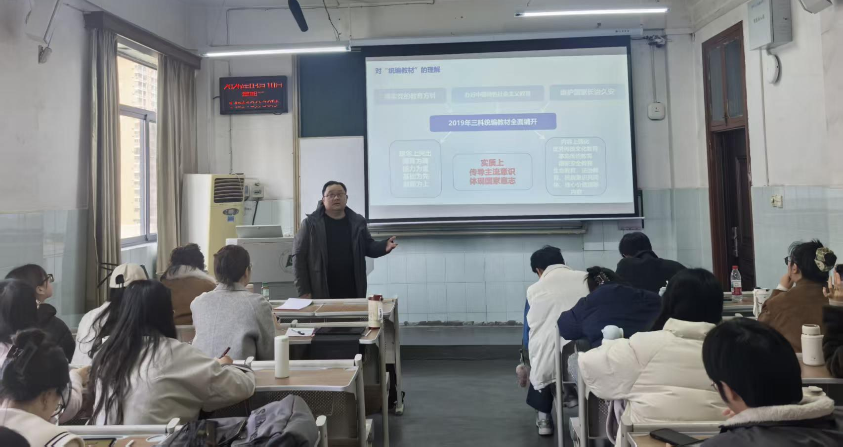 为深入推进大中小学思政课一体化建设,探索协同育人新路径,提升师范生专业素养与教学实践能力,本学期以来,yl23411集团学科教学(思政)硕士培养点,邀请武汉市特级专家、教学名师进课堂,为2025级学科教学(思政)专硕研究生常态化开展“大中小学思政课一体化示范课堂”系列教学活动。活动特邀五位武汉一线资深思政教师、教研员轮番走进课堂,以“双师课堂”为核心载体,围绕思政课建设、大单元教学、情境教学思维、职业发展等关键议题展开深度分享,通过“高校导师+一线名师”的双师联动模式,实现优质教育资源跨学段共享、教学经验双向赋能。
