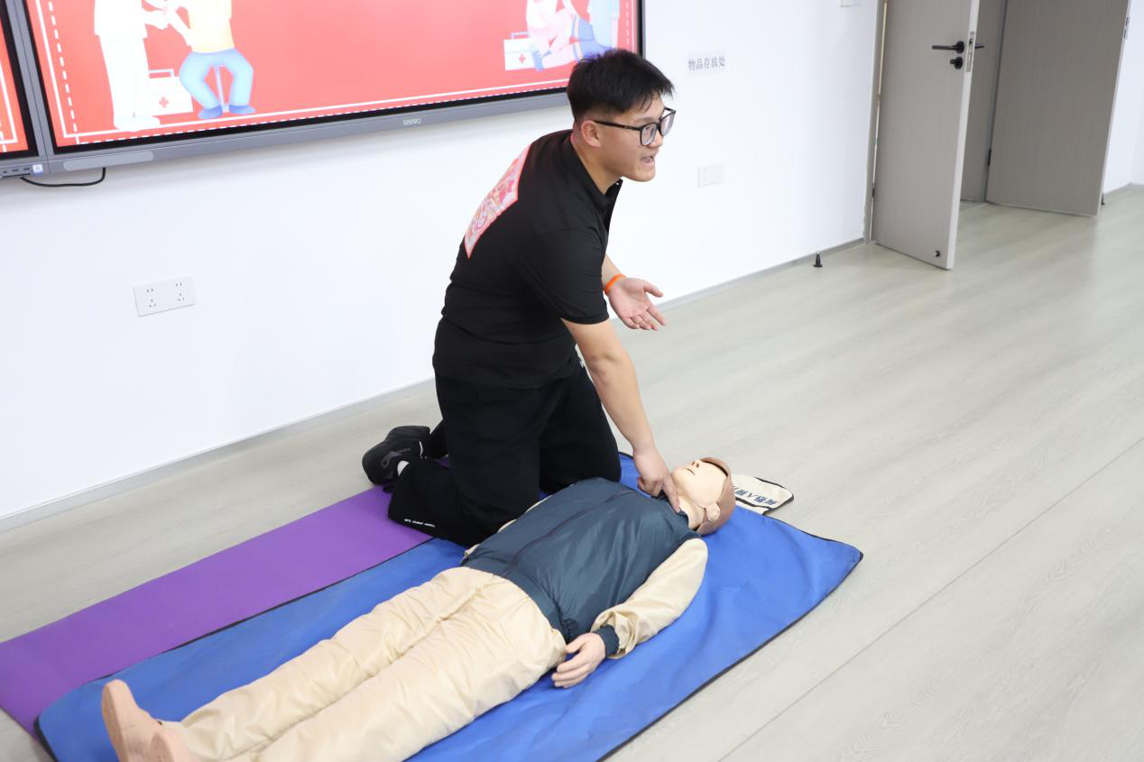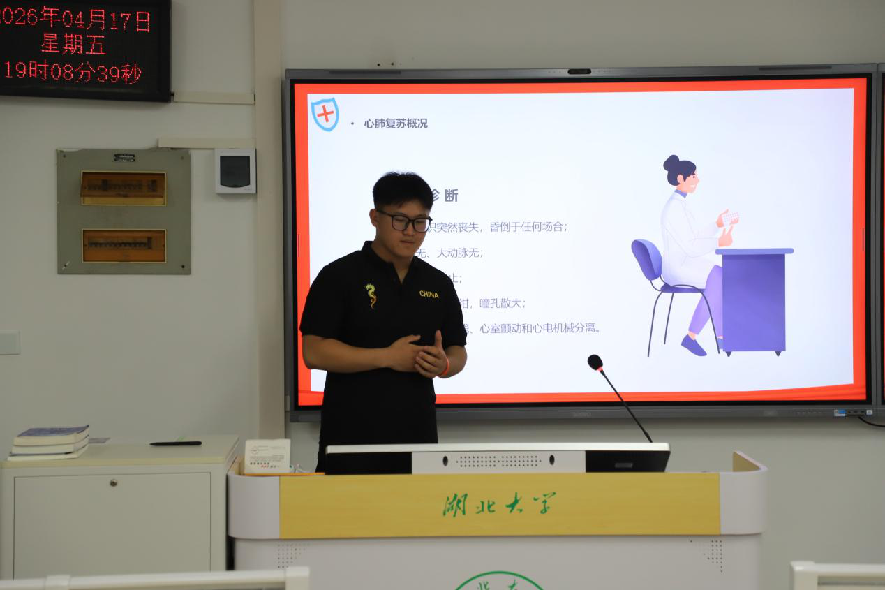 活动现场,体育学院健康管理团支部同学充分发挥专业特长,结合长征路上的急救故事,系统讲解了心肺复苏的操作原理、核心要领及注意事项,并借助急救模拟人进行了规范演示,直观展现了按压、通气等关键步骤。在实践实操环节,我院学生积极参与、认真练习,在体院同学的一对一指导下,逐步规范动作细节,熟练掌握操作技巧,现场观摩同学也认真记录、相互交流,进一步巩固了急救知识。