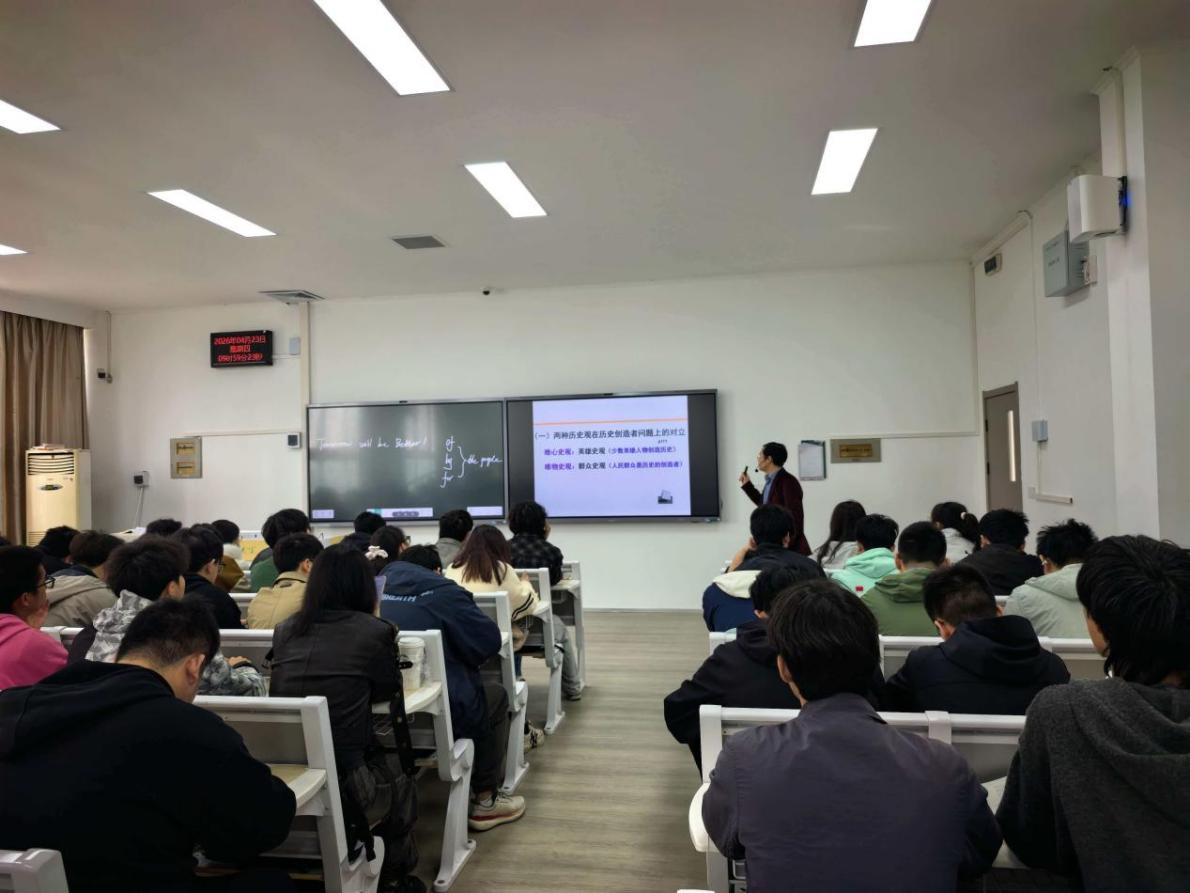 在上午的公开课环节,杨海军老师围绕专题四“人民群众是历史的创造者”进行授课,主要采用了中英双语教学、情景式教学、探究式教学等教学方法,主要讲授了英雄史观与群众史观、人民群众及其构成、人民群众历史作用的主要表现三个方面的内容,系统阐发了概念与核心问题。