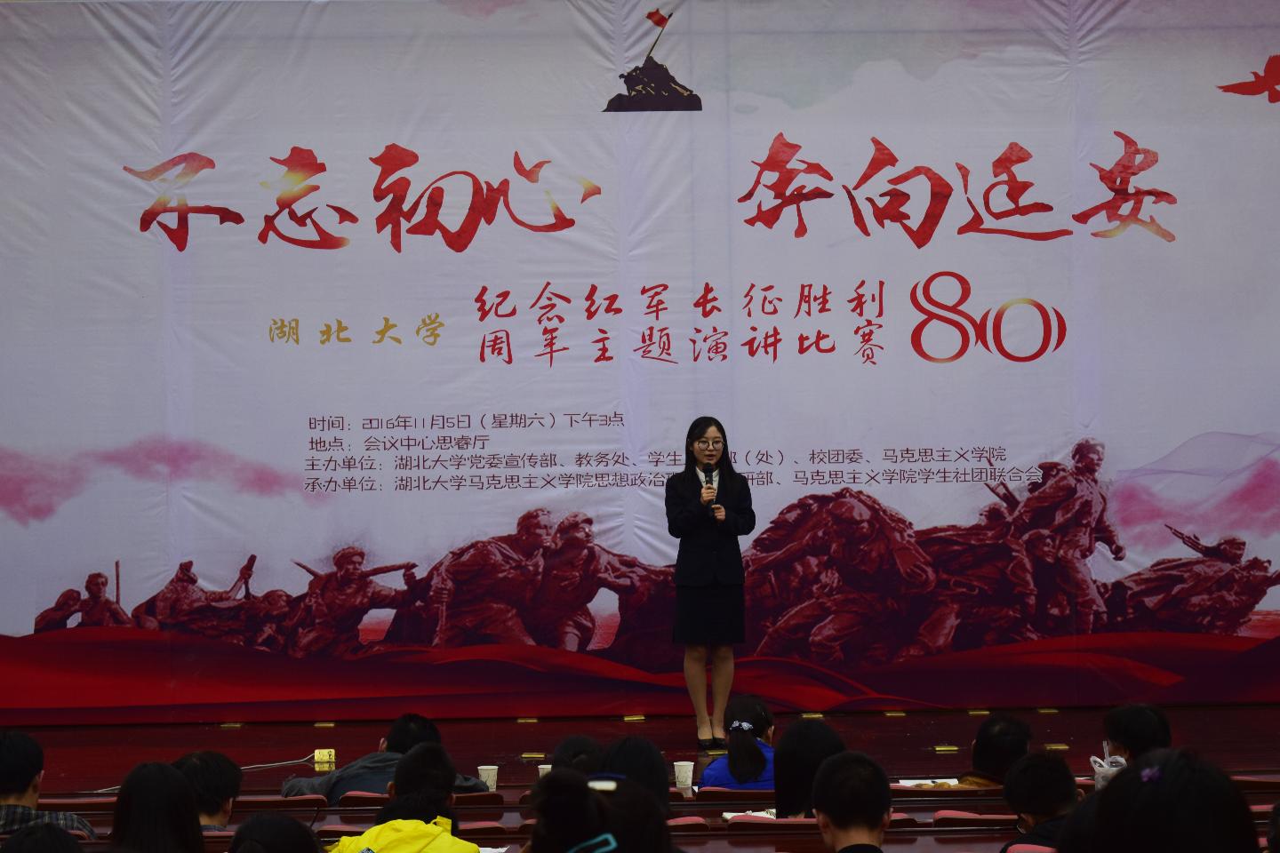 11月5号下午3点,yL23411永利集团纪念长征胜利80周年主题演讲比赛决赛在学校会议中心思睿厅举行。学校教务处副处长殷云飞、学工处处长刘靖君、校团委副书记郑仲、yl23411集团院长徐方平、文学院申利锋副教授出席并担任评委,yl23411集团教师及各学院学生代表参加活动。