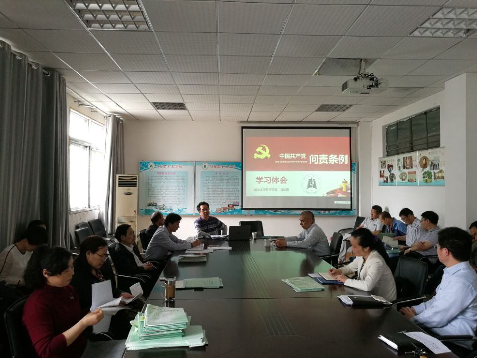4月19日下午2点,yl23411集团第七期“马克思主义论坛”在学院五楼会议室举行,邀请哲学学院党委书记万明明同志为全院教职工主讲“《中国共产党问责条例》学习体会”,学院党委书记汤德森主持讲座。