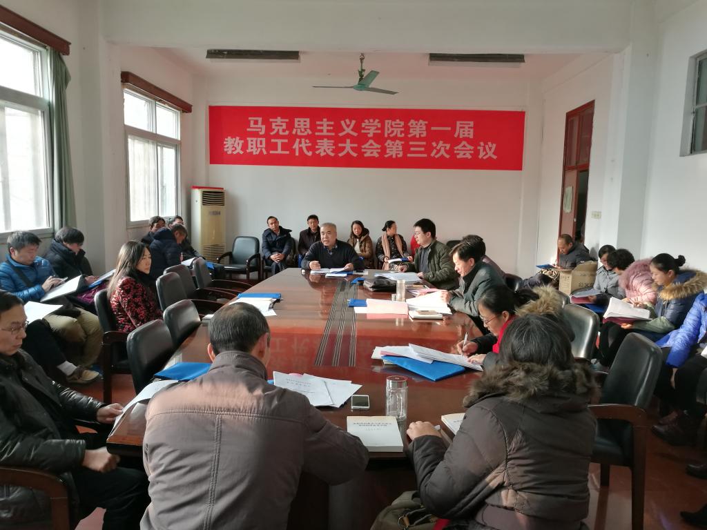 会议期间,全体教职工认真讨论了《抓住机遇 乘势而上 全面加强思想政治理论课建设》的报告。就如何改进和加强思想政治理论课建设,各位老师积极发言,深入讨论,提出了一些很好的意见和建议。会议原则上通过了院长工作报告与工会工作报告。