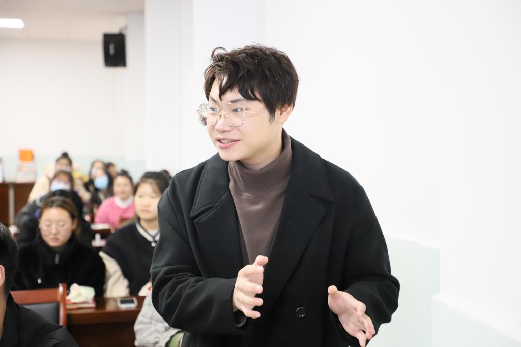 提问环节,我院学生积极参与、踊跃发言,举手询问了许多有关思政课教学的问题,周金娥老师热情解答了刘传禹、王潇等同学的问题,周老师凭借丰富的教学经验,解答了大家的困惑,赢得同学们的阵阵掌声。