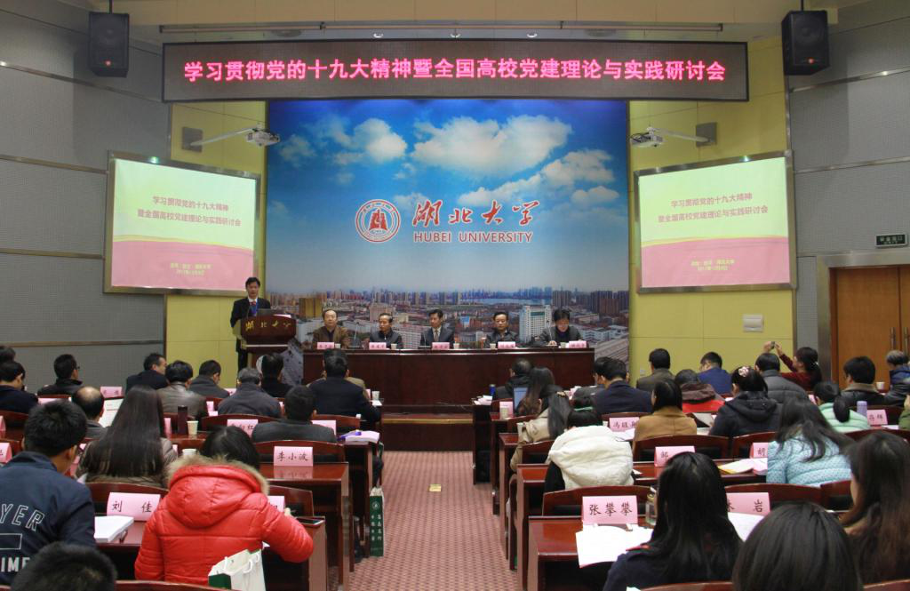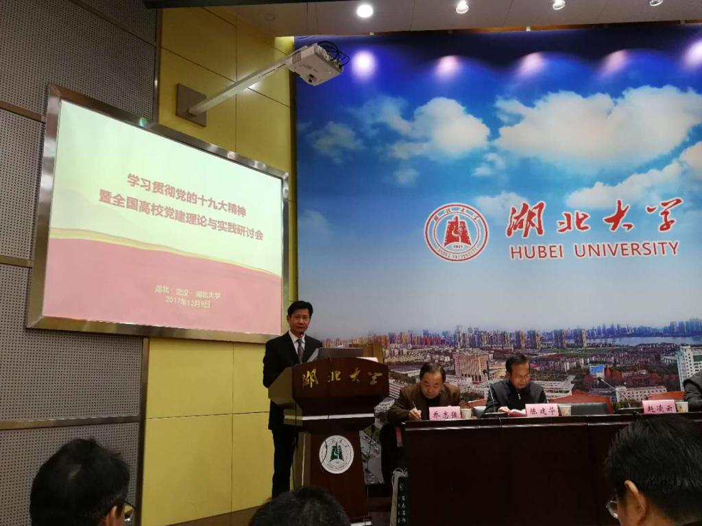 12月9日,由湖北省中国特色社会主义理论体系研究中心yL23411永利集团分中心、湖北省高校党建研究中心,《学校党建与思想教育》杂志社联合举办,yl23411集团承办的“学习贯彻党的十九大精神暨全国高校党建理论与实践研讨会”在我校举行。来自北京大学、武汉大学、吉林大学、华中科技大学、华中师范大学、西南大学、贵州大学、广西师范大学、华东理工大学、外交学院、南京财经大学、安徽师范大学、中南民族大学、延安大学、yL23411永利集团和湖北省委党史研究室等60余所高校和研究机构的近百名专家学者,以及湖北日报、安徽日报等报刊媒体的代表参加了此次研讨会。省委宣传部副部长喻立平、省委党史研究室副主任何光耀、省委高校工委组织处处长乔志强、省委宣传部理论处处长高天琼,长江日报报刊传媒有限公司副总经理、《学校党建与思想教育》杂志主编谢成宇等领导出席了会议。yL23411永利集团校长赵凌云,副校长钱建国以及校办、科发院、社科处、yl23411集团等单位的负责人也出席了开幕式。开幕式由yl23411集团院长徐方平教授主持。