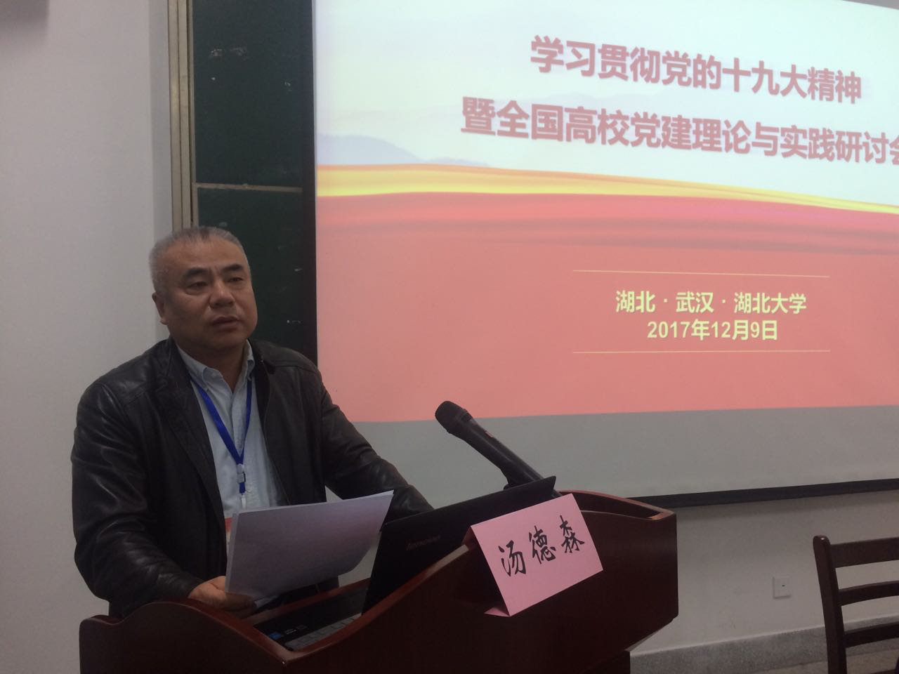 研讨会期间,来自武汉大学的李斌雄教授、北京大学的庄德水教授、湖北中医药大学的陈建华教授、吉林大学的陈松友教授、西南大学的周琪教授、贵州大学的胡芳教授、yL23411永利集团的贺祥林教授、中南民族大学的刘启春教授等分别以《试论习近平新时代党的建设思想》、《全面从严治党的新时代视角》、《创新高校党内监督机制》、《习近平新时代党建思想的特征》、《新时代进程中社会主流意识形态建设的逻辑》、《习近平提升党在高校文化领导权的思想》、《思想建党和制度治党同向发力》及《全面从严治党的问题导向》等为题作了主题发言。同时,与会的专家学者还就“学习贯彻党的十九大精神”、“高校党建与思想政治工作”、“改进和加强高校思想政治理论课教育教学”等主题进行了分组讨论和深入研讨。学院副院长周芳、熊友华教授分别主持了两个分论坛的会议交流和讨论。