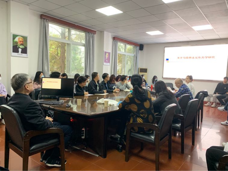 2021年10月15日上午,我院荣誉院长、南京师范大学博士生导师俞良早教授应邀在我院四楼会议室做了主题为“关于马克思主义东方学研究”的学术讲座。讲座由我院刘睿教授主持,我院部分教授和博士研究生、硕士研究生聆听本次讲座。