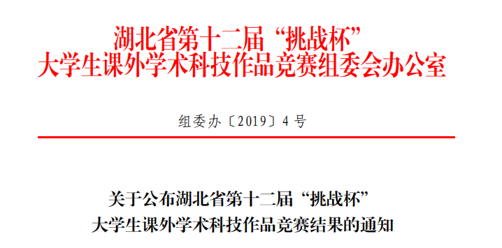 5月25日至26日,湖北省第十二届“挑战杯”大学生课外学术科技作品竞赛终审决赛暨闭幕式在武汉轻工大学举行。本届大赛以“科技创新志 青年报国行”为主题,由团省委、省科协、省教育厅、省学联主办,武汉轻工大学承办。我院2016级本科生团队作品《当代大学生马克思主义信仰状况调查研究报告》荣获省赛二等奖。