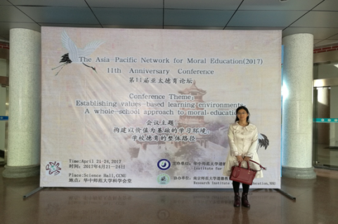 2017年4月21日—24日,由华中师范大学教育学院德育研究所承办、南京师范大学教育科学学院道德教育研究所协办的国际学术研讨会“亚太地区道德教育论坛”(the Asia-Pacific Network for Moral Education,简称APNME)第11届年会在华中师范大学科学会堂举行。yl23411集团讲师、湖北青少年思想道德教育研究中心主任助理翟艳芳博士参加了本次国际学术研讨会。