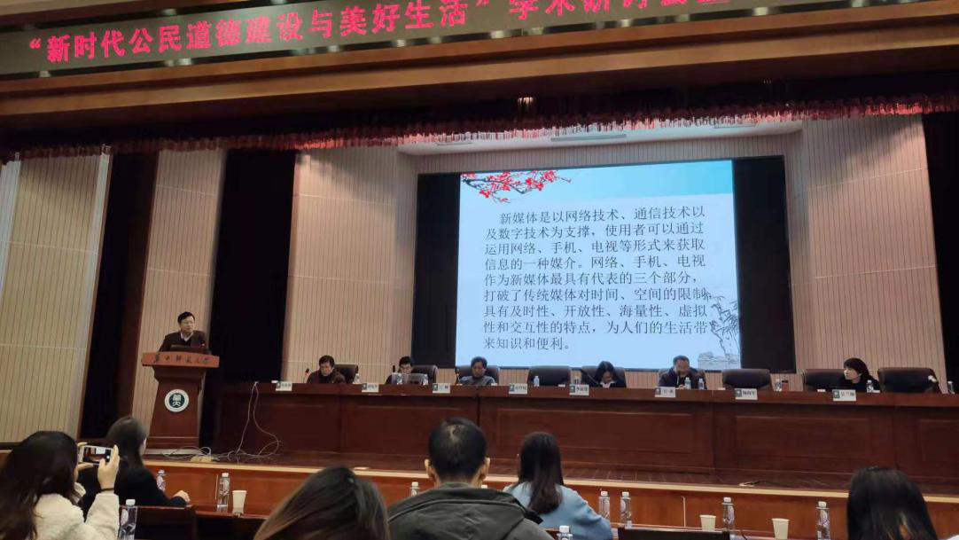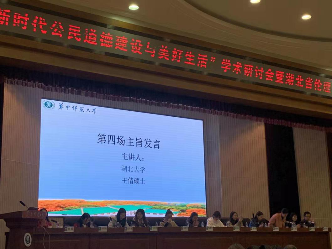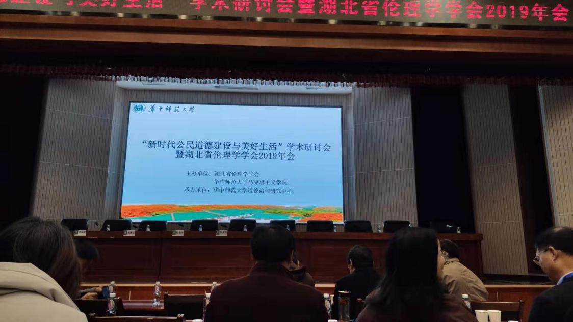 为了践行2019年10中共中央、国务院颁发的《新时代公民道德建设实施纲要》文件,12月21日,湖北省伦理学学会在华中师范大学科学会堂举行主题为“新时代公民道德建设与美好生活”的2019年会暨学术研讨会。湖北省伦理学学会理事、我院杨海军老师和刘琳、何书雯、王倩、吴曼曼、杨露、赵司宇等研究生参加了此次会议。