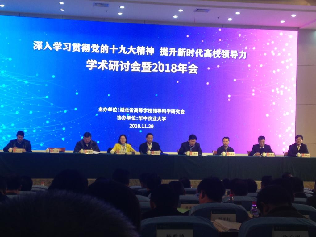 2018年11月29日,“深入学习十九大精神,提升新时代高校领导力”学术研讨会在华中农业大学召开。研讨会由省社科联合会和省高等学校领导科学研究会主办,华中农业大学协办,研讨会切合高校综合改革、创建“双一流”实际,研讨、交流提升新时代高校领导力。来自全省各高校的相关领导、学者等逾百人出席了研讨会,学院杨海军老师应邀参加。