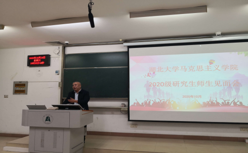 院党委书记汤德森以疫情期间学院领导班子积极组织进行战疫,学院的老师们在做好教学工作同时,参加抗疫志愿服务,以马院行动展现湖大马院教师风采的事迹,讲述马院的人文情怀。在欢迎同学们来到湖大马院同时,他鼓励学子们认真学习,加强专业学习,实现个人梦想。