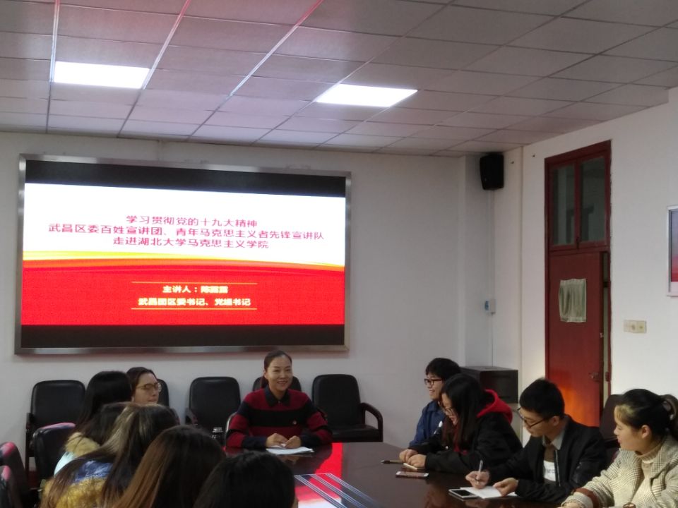 12月8日下午,武昌团区委书记、党组书记陈露露莅临我院,为学院学生党员做题为《青年马克思主义者的时代担当》的报告。院党委副书记王雄主持报告会。