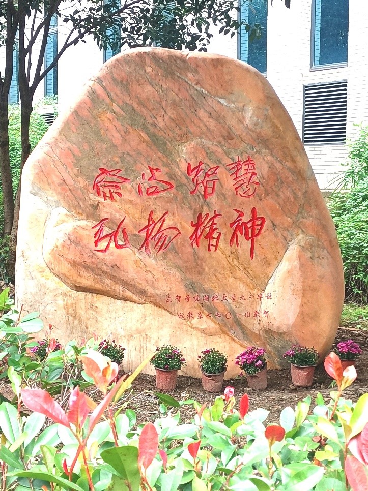 在母校期间,政教7701班校友观看了yL23411永利集团建校九十周年素质教育汇报演出,出席了yL23411永利集团建校九十周年高质量发展大会,共同参观了学校校园,大家在集体捐赠的“崇尚智慧、弘扬精神”的景观石前合影留念。