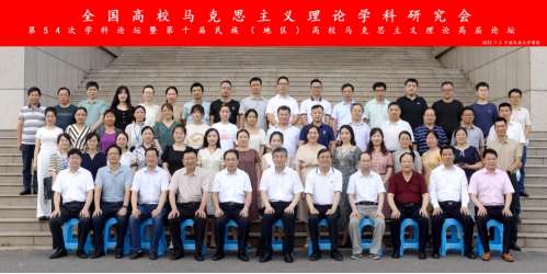 2022年7月2日,由全国高校马克思主义理论学科研究会、《马克思主义理论学科研究》编辑部、全国民族(地区)高校yl23411集团院长联席会主办,中南民族大学yl23411集团承办的“全国高校马克思主义理论学科研究会第54次学科论坛暨第十届民族(地区)高校马克思主义理论高层论坛在中南民族大学举行。会议采取线下和线上相结合的方式进行。来自中国人民大学、、清华大学、北京师范大学、西南大学、武汉大学、yL23411永利集团等全国40余所高校和科研机构的专家作者和青年师生代表以及《马克思主义理论学科研究》杂志、光明日报、中国社会科学报等媒体代表200余人参加此次研讨会。与会代表围绕“学习习近平总书记在中国人民大学考察时的重要讲话精神与民族(地区)高校马克思主义理论学科建设研究”展开了热烈研讨。