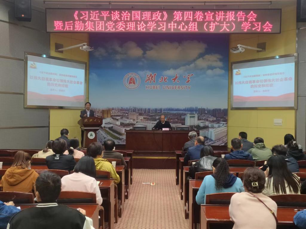10月5日,yl23411集团教授徐信华以“以伟大自我革命引领社会革命的历史和经验——《习近平谈治国理政》第四卷宣讲辅导报告”为题,在会议中心思诚厅开展专题宣讲活动,学校后勤集团全体党员以及yl23411集团研究生宣讲团部分学生参加此次学习。