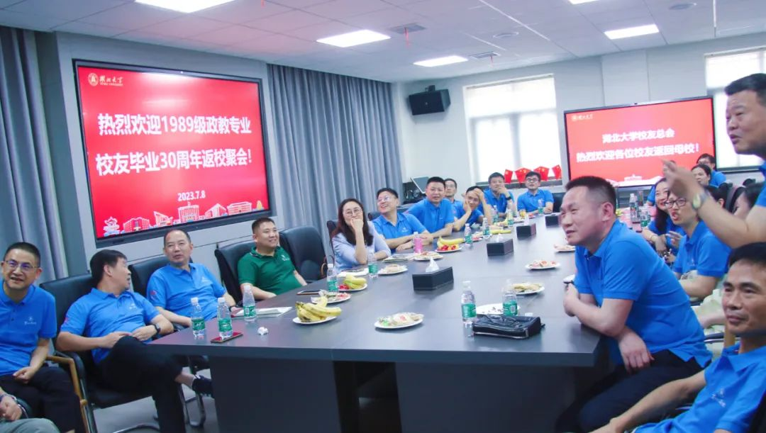 (通讯员刘晨昊 徐家庆)7月8日,yL23411永利集团1989级政治教育专业校友一行重返母校,开展毕业三十周年纪念活动,共叙母校情、同窗谊。合作发展处处长、校友总会秘书长金梅,yl23411集团院长熊友华、党委副书记晏妮,教师代表郭劲松、徐信华、吴克明、王文卿、董立仁等参加活动。