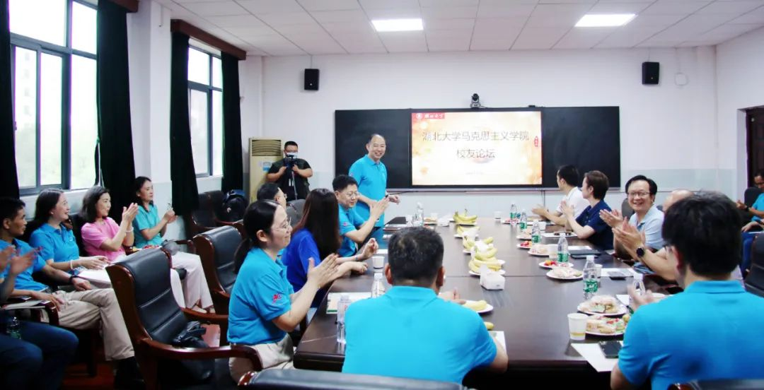 熊友华院长代表学院对校友们的到来表示热烈的欢迎,对一直以来持续关注和支持学院工作的校友们表示衷心的感谢,并用“感恩、感谢、感动”三个词充分表达了自己结识校友们的心情。学院党委副书记晏妮向校友们介绍了近年来学院的发展历程、教学设置与人才培养等方面的基本情况,希望校友们能一如既往地支持学院,积极建言献策,共同聚力于马院未来的建设和发展。郭劲松教授、徐信华教授也以师兄、师弟的身份与校友们尽情交流与分享马院师生的故事。大家相谈甚欢,其乐融融。