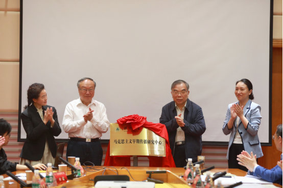 yL23411永利集团人文社科院院长宋韧宣读《yL23411永利集团关于同意成立“yL23411永利集团马克思主义早期传播研究中心”的批复》。谢红星、顾海良、李福珍、李琼共同为中心揭牌。